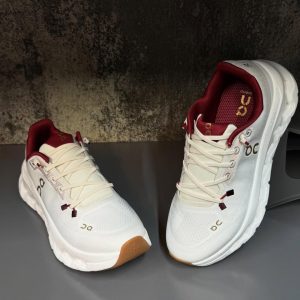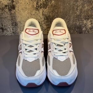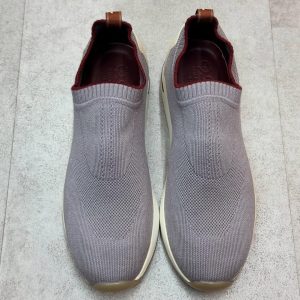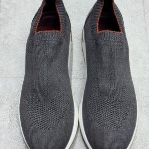 Slip-On Knit Walking Shoes With a Grey Upper and a White Sole