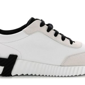DELIVERY ALL OVER UAE ( 1-2 DAYS ) This is an authentic pair of HERMES Air Mesh Suede Goatskin Bouncing Sneakers in Black. These stylish sneakers are crafted of black goatskin leather with black suede leather trim. They feature white laces and thick, white rubber soles.