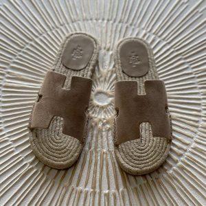 Embrace relaxed elegance with the Hermès Antigua Espadrille in Gold Suede Goatskin (Men’s). Crafted in Spain, this distinguished espadrille showcases a plush suede goatskin upper with the signature “H” cut-out design, offering an iconic Hermès aesthetic. The layered construction features a natural rope midsole, reinforced by a leather sole with a protective rubber insert—perfectly uniting…