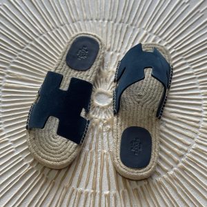 Step into timeless summer elegance with the Hermès Antigua Espadrille in Black Leather. This refined slip-on balances heritage craftsmanship and relaxed charm—crafted in Spain and styled with Hermès’ distinctive “H” cut-out on a smooth leather upper. Built with a traditional rope-wrapped midsole and finished with a leather outsole enhanced by a protective rubber insert, this…