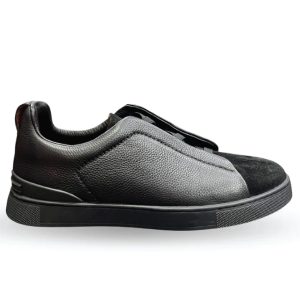 Zegna Velvet & Deerskin Triple Stitch™ Sneakers – Black Luxury Slip-On