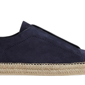 DELIVERY ALL OVER UAE ( 1-2 DAYS ) A lighter version of ZEGNA’s iconic sneakers, the dark blue suede Triple Stitch™ espadrilles combine an unexpected mix of materials to create a chic look. Underneath the rich suede, the espadrilles’ iconic roped midsoles are paired with lightweight rubber soles. Their signature triple-crossed elastics keep them secure…