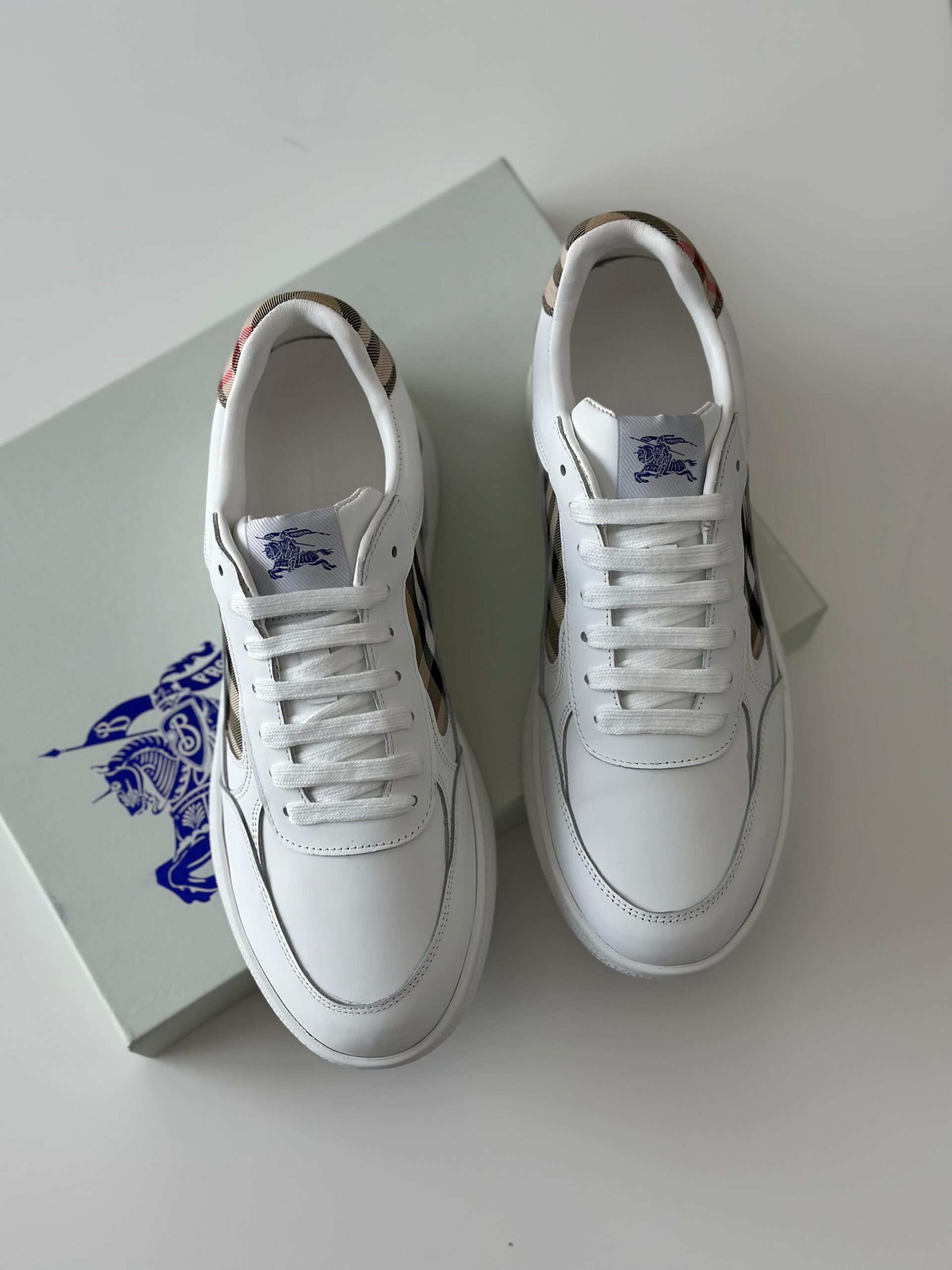 Burberry Check EKD Leather Sneakers – Optic White