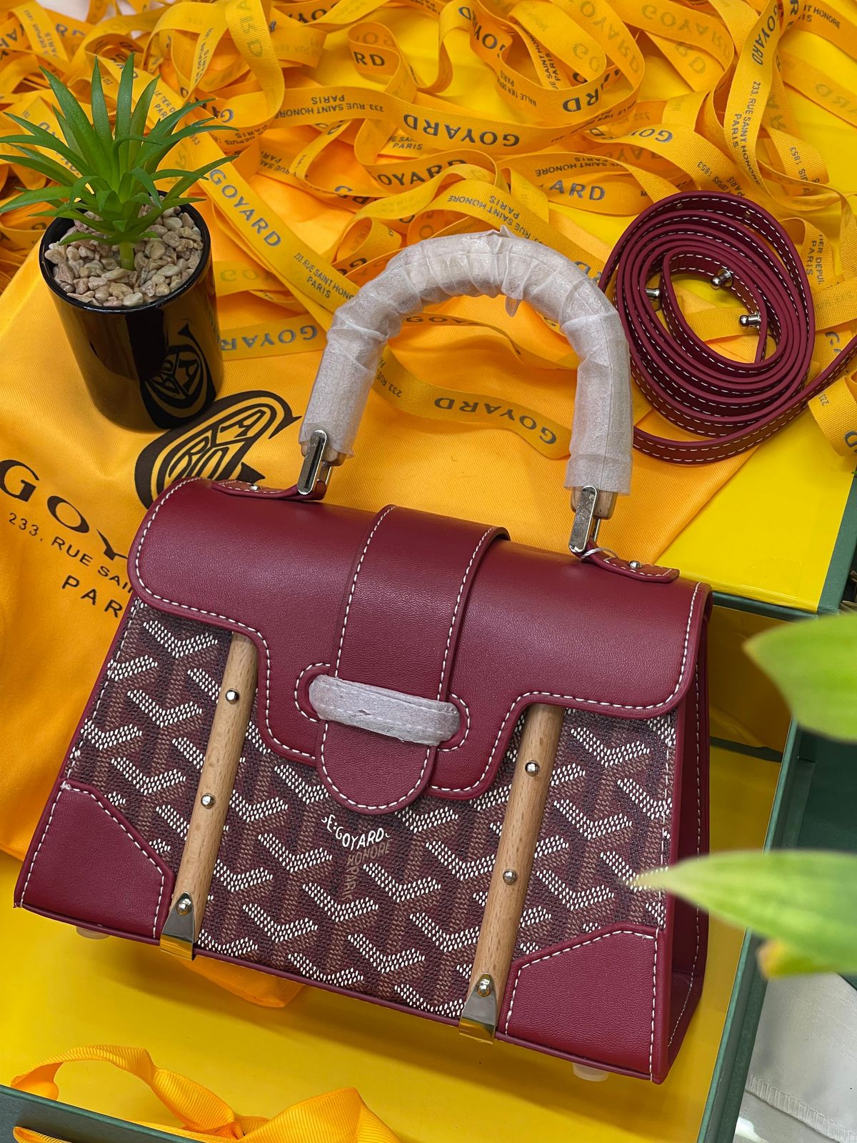 Goyard Saigon PM in Burgundy With the Classic Goyard Chevron Pattern