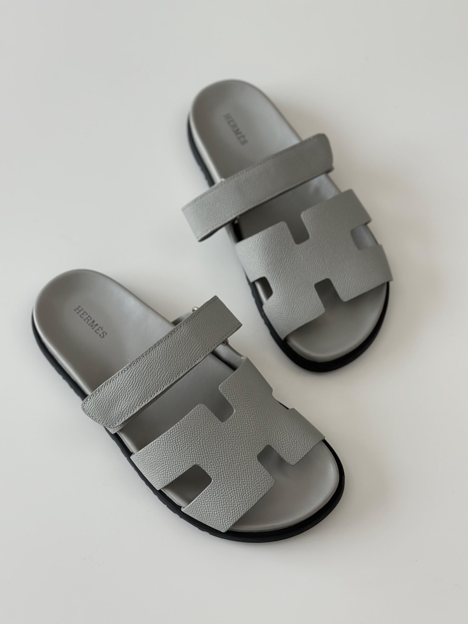 Discover modern elegance with the Hermès Chypre Sandal in White. Crafted in Italy, this slip-on features the distinctive “H” cut-out strap and a flexible, ergonomic rubber sole for effortless comfort. The adjustable design ensures a tailored fit, while the pristine white leather delivers understated luxury—perfect for refined, casual styling.