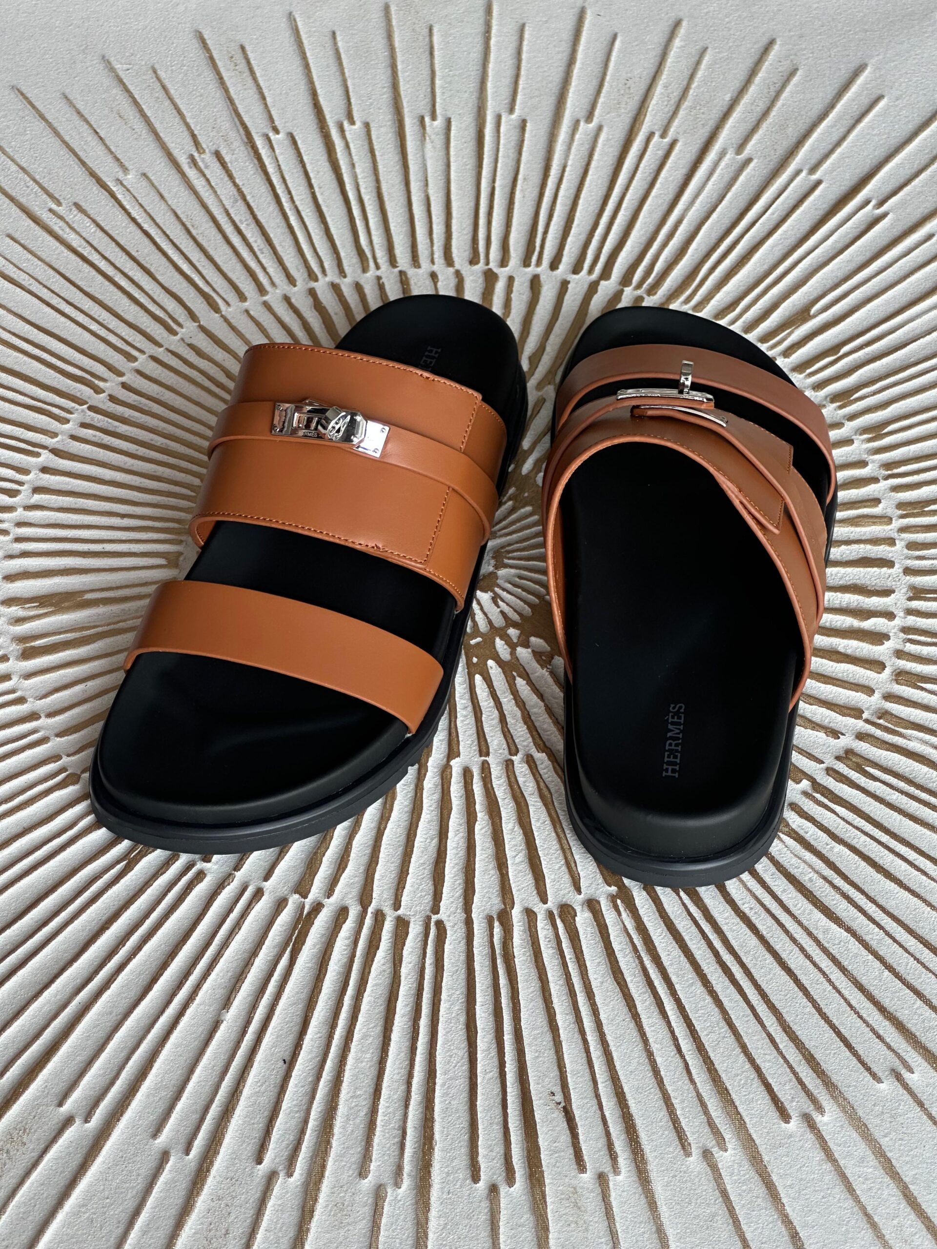 Step into modern elegance with the Hermès Jackson Sandal in Brown, as featured by Hermès Mainland China. This refined slip-on sandal showcases premium materials—choose between plush suede goatskin or classic Heritage calfskin—accented with the Maison’s signature Kelly buckle. Designed atop a sculpted anatomical rubber sole, this sandal offers comfort without compromising sophistication. Crafted in Italy, it merges contemporary ease with the timeless luxury of Hermès.