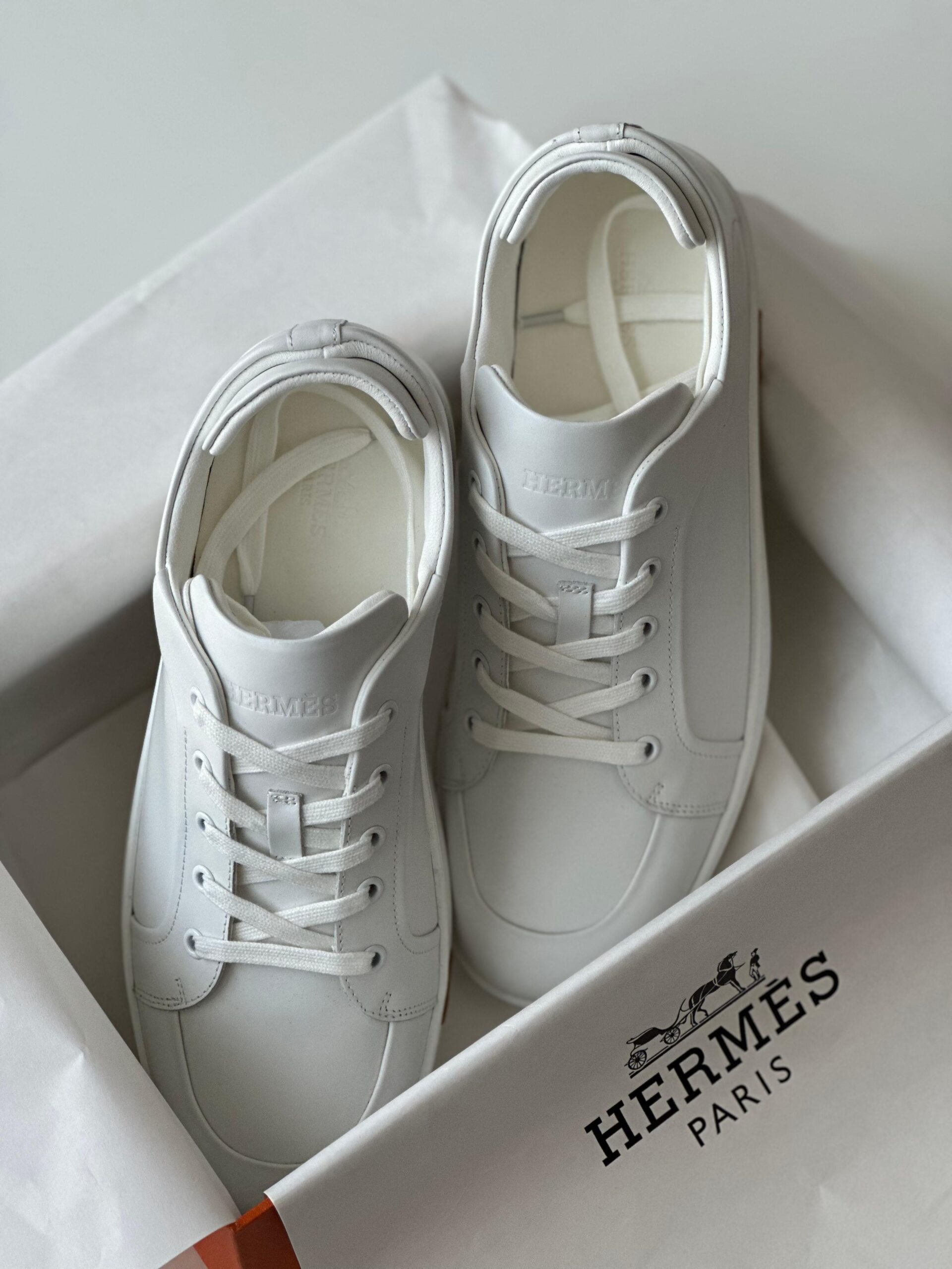 Hermès Kid Sneaker in White Calfskin & Suede – Sleek Urban Luxury.