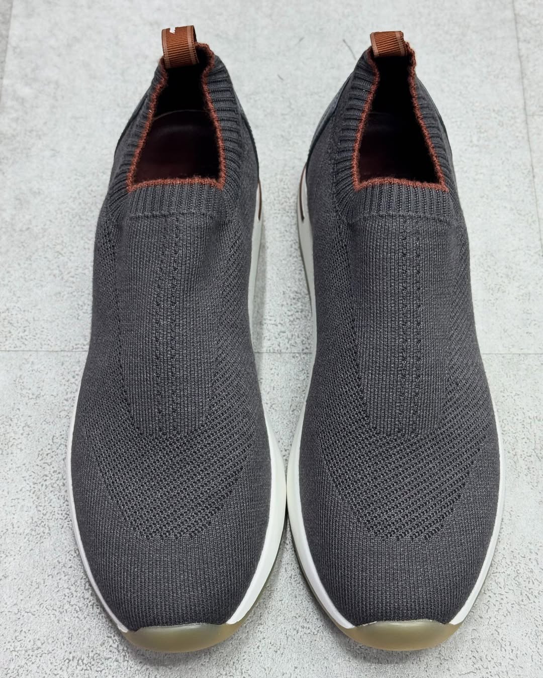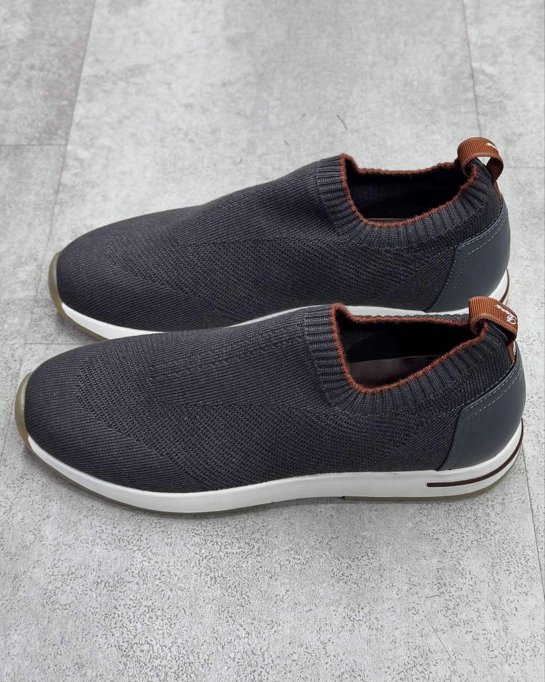 Slip-On Knit Walking Shoes With a Grey Upper and a White Sole