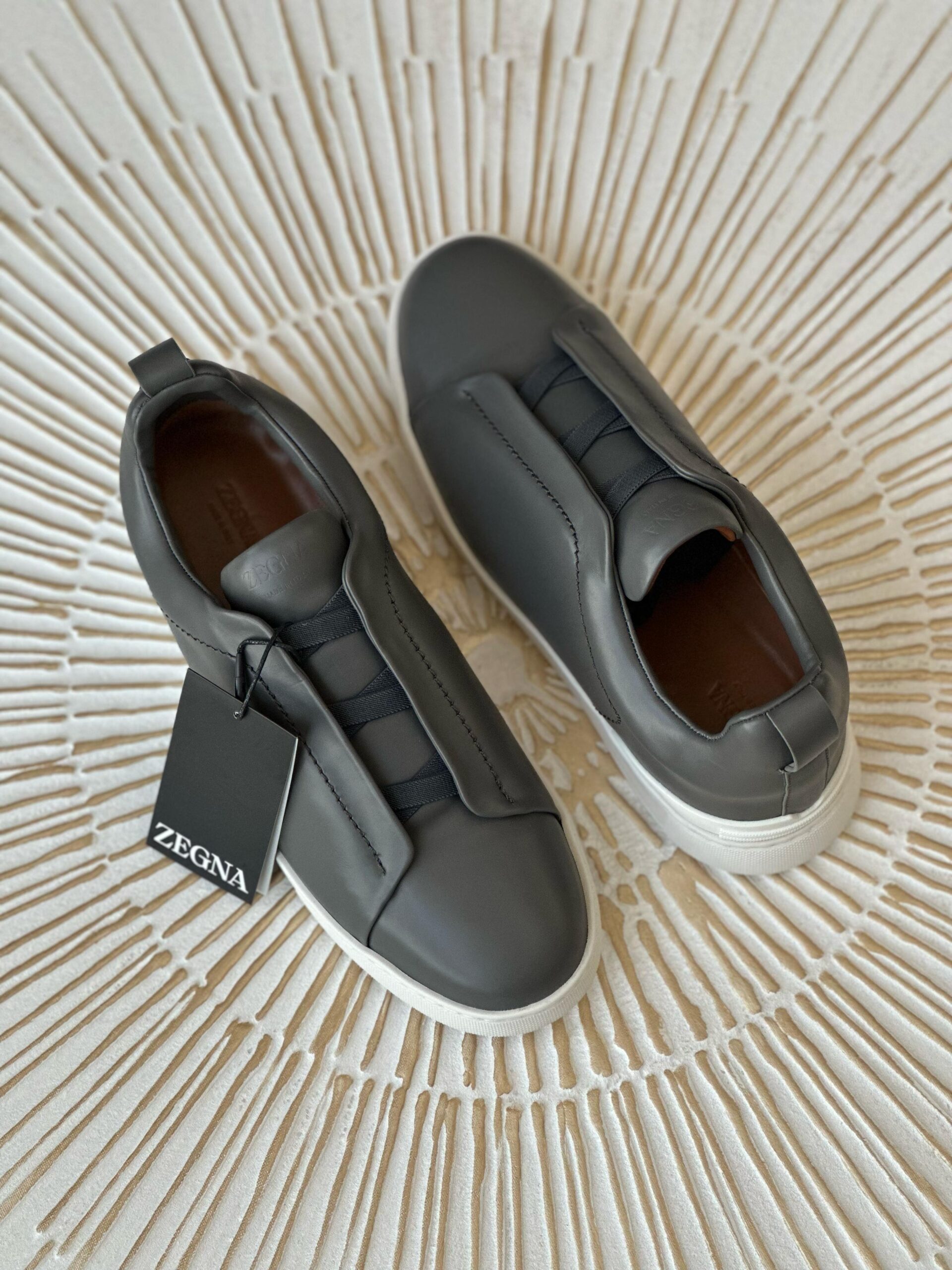 Zegna Triple Stitch Leather Sneakers | Carbon Black