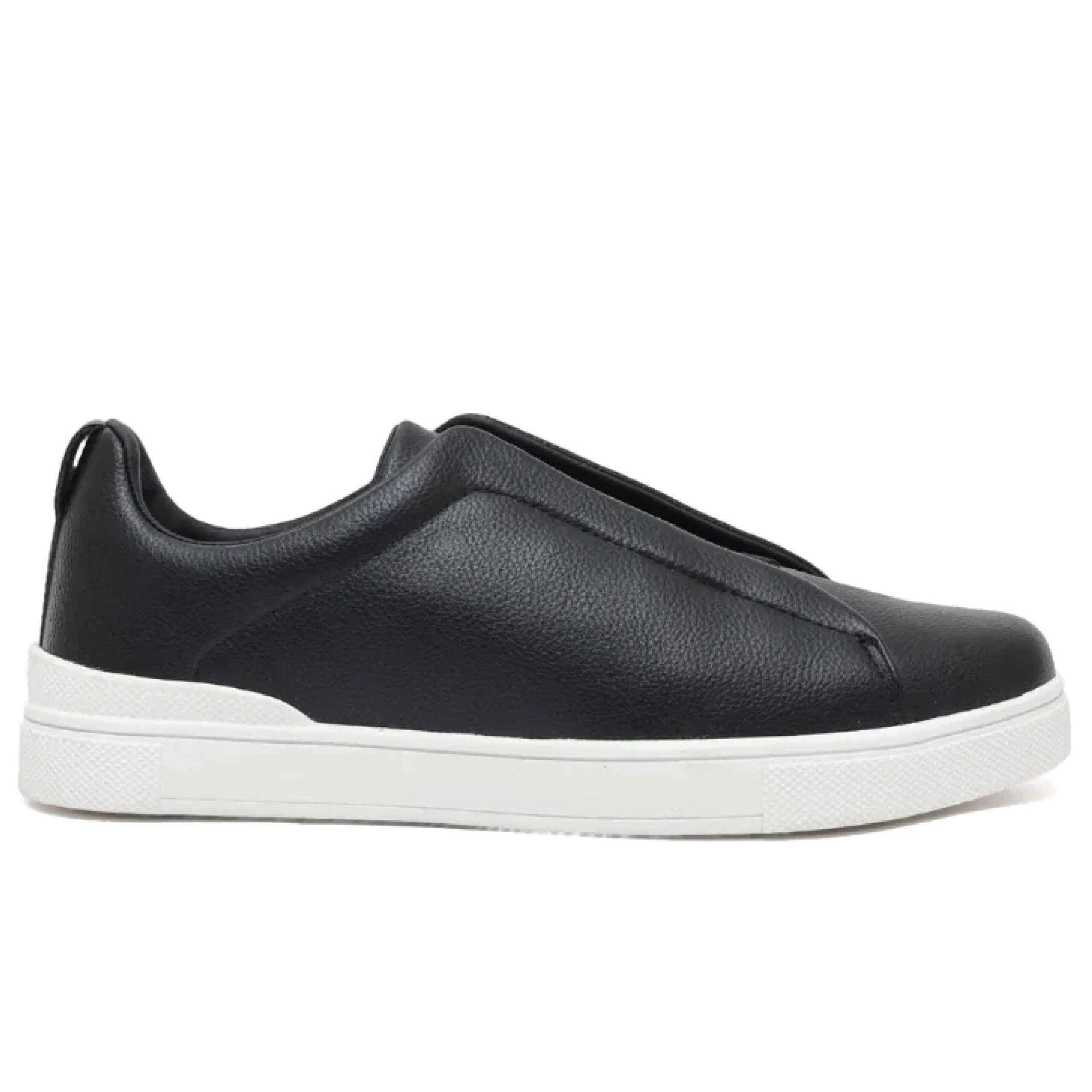 Zegna Triple Stitch Low-Top Sneakers – Black Calf Leather & White Rubber Sole